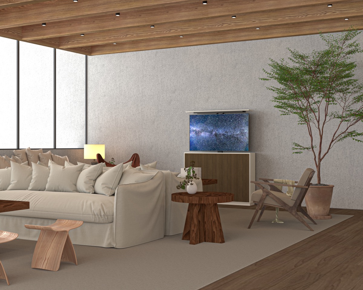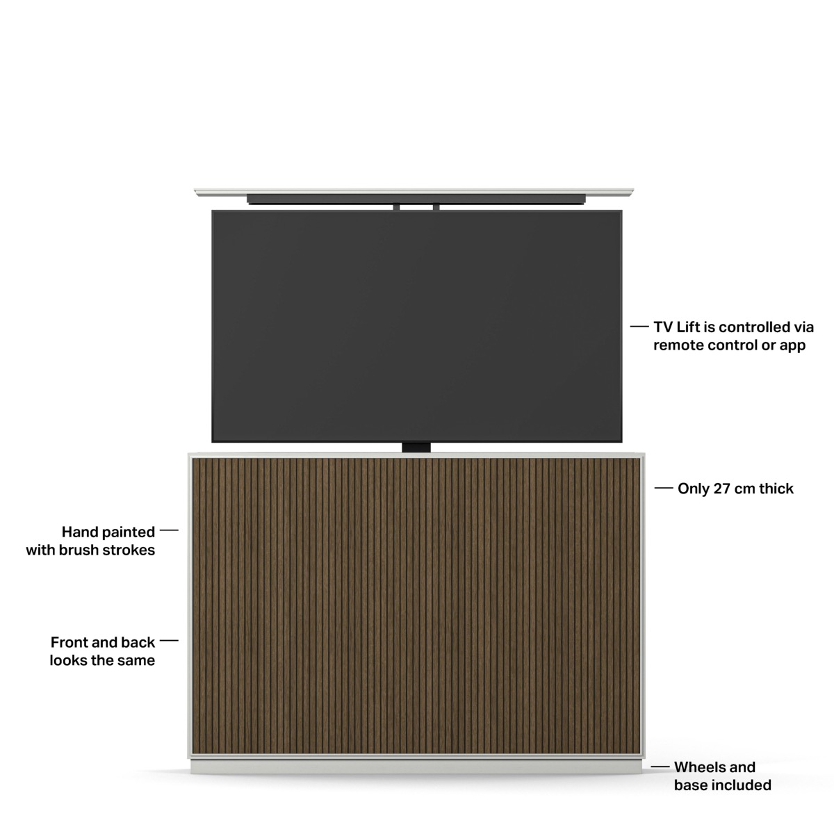 Ce meuble élévateur est également doté d'une fonction anti-collision intégrée qui protège à la fois le téléviseur et le décor environnant. Il peut être contrôlé à l'aide de la télécommande fournie.