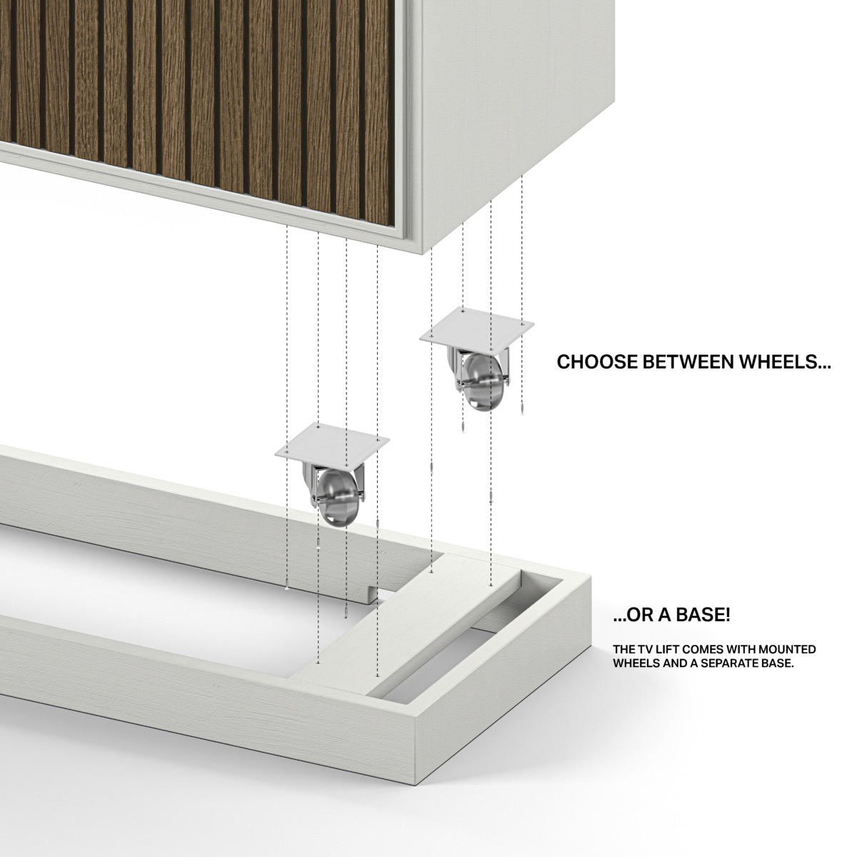 Utilisez-le avec la base ou les roulettes incluses pour plus de polyvalence. Les roulettes intégrées vous permettent de déplacer facilement l'armoire d'une pièce à l'autre, ou même sur une terrasse. Si vous préférez une installation fixe, la base peut être utilisée pour dissimuler les roulettes afin d'obtenir un aspect homogène.