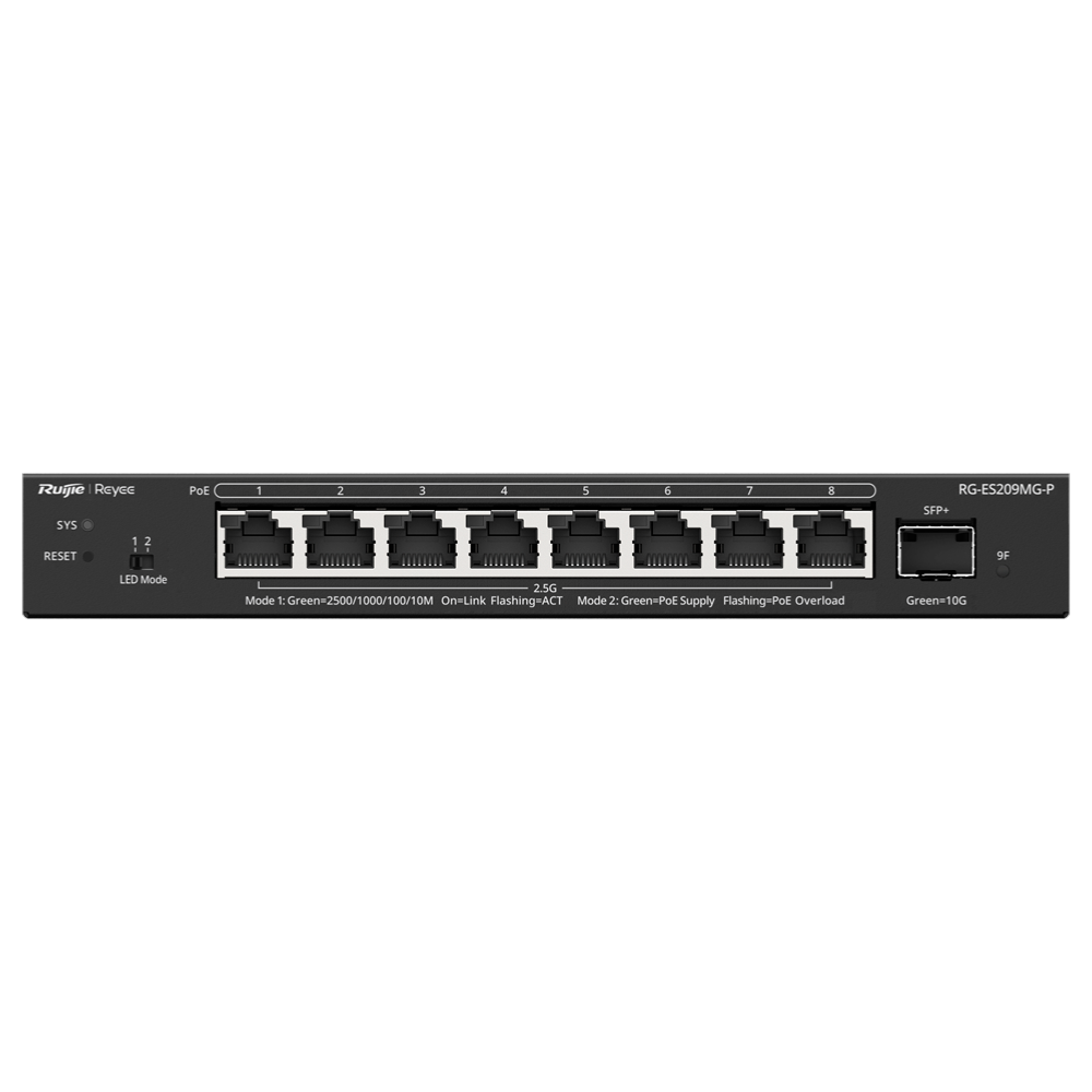 RG-ES209MG-P, commutateur PoE de 8 ports de 2,5G géré par le cloud, 1 liaison montante de 10G